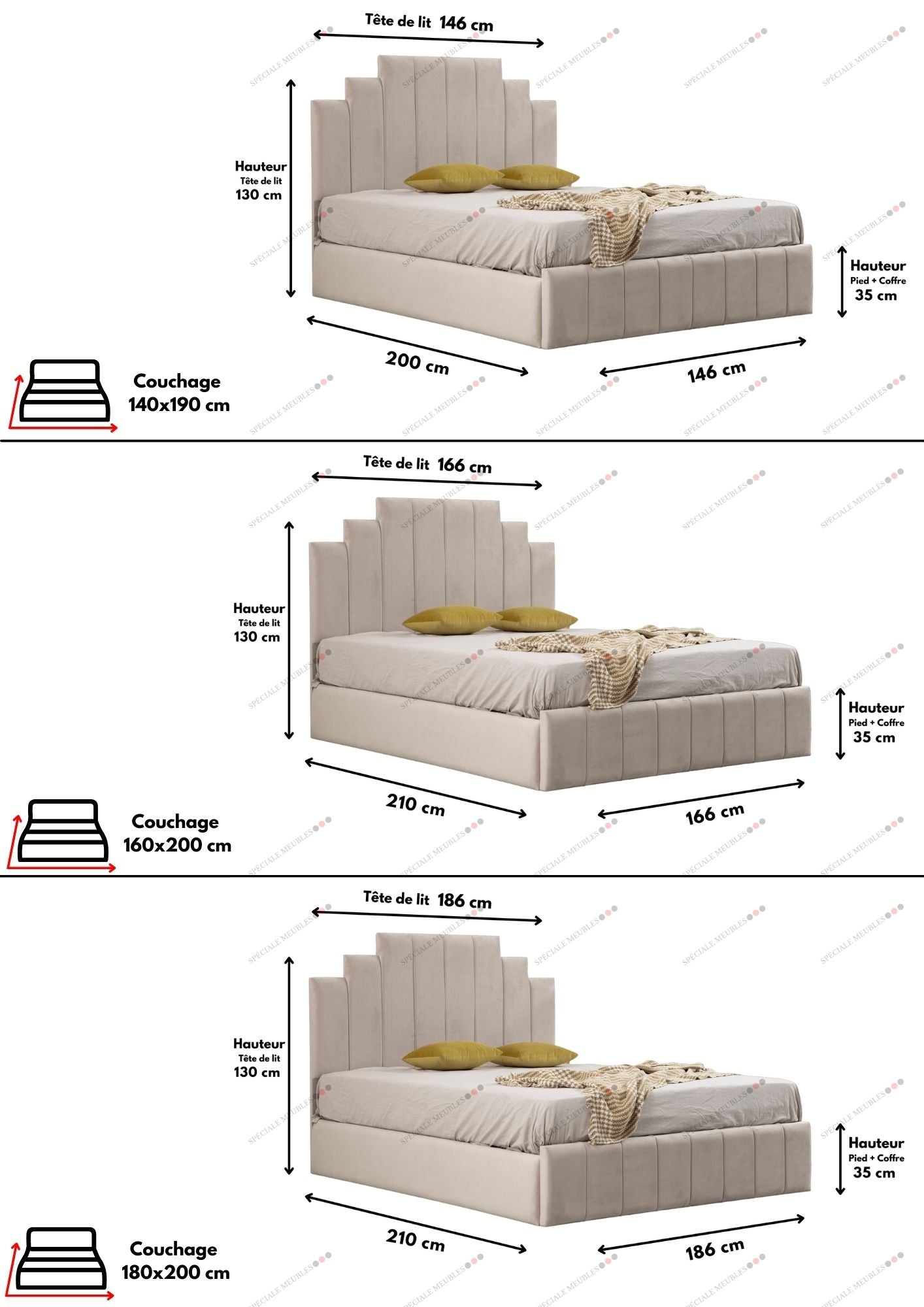 3 dimensions : 140x190 – 160x200 – 180x200