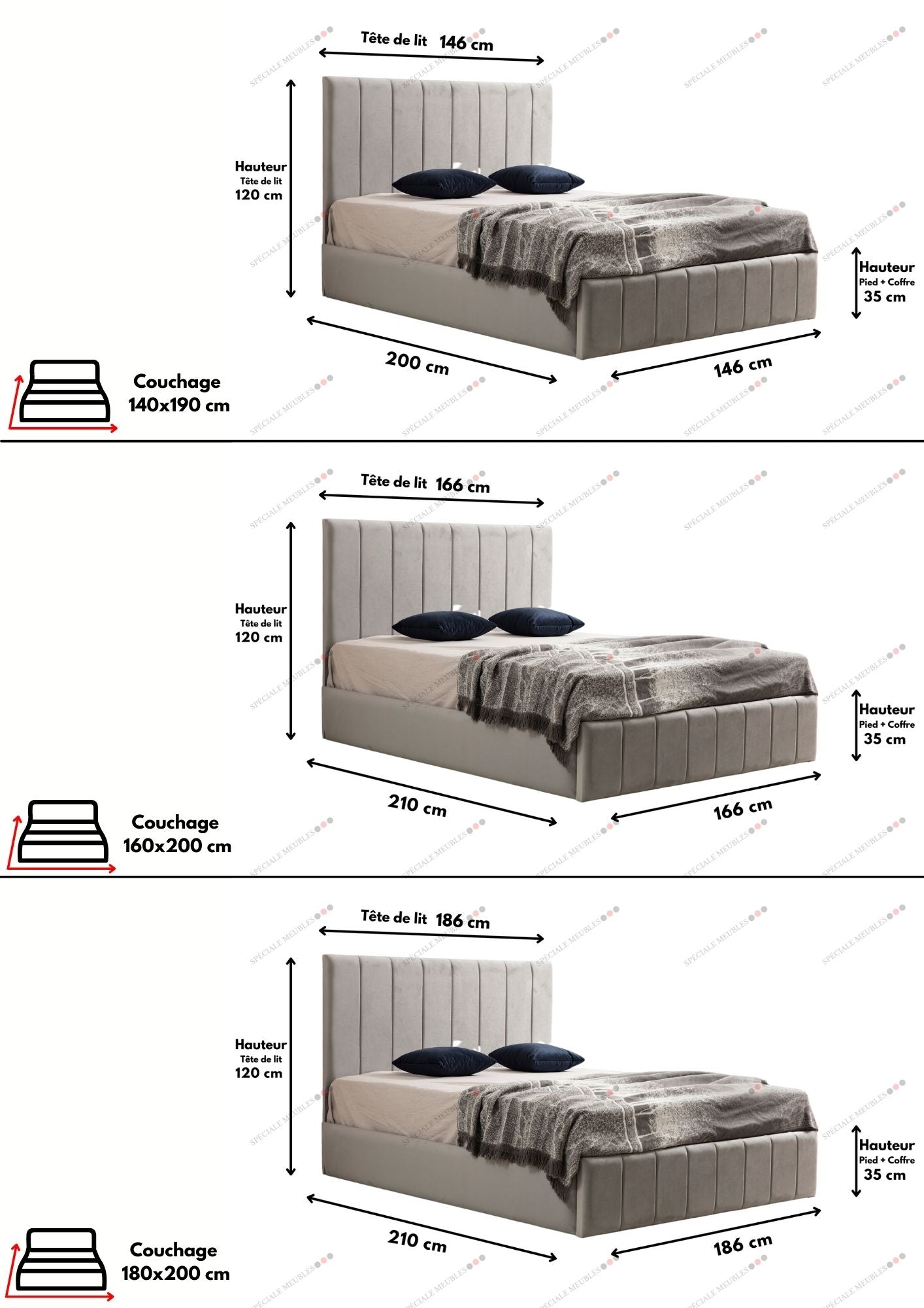 3 dimensions : 140x190 – 160x200 – 180x200