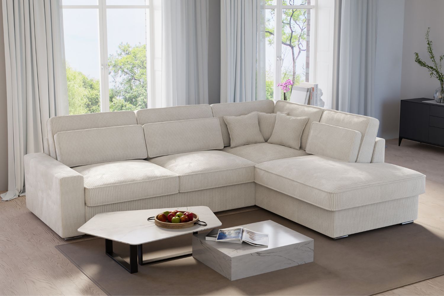 Canapé D'angle Lexus Côtelé Blanc Cassé